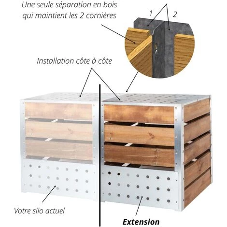 | Informations complémentaires | Couvercle percé pour favoriser une bonne humidification , Possibilité d’ajouter plusieurs extensions , Extension à ajouter au Silo à compost acier et bois (470L) de la marque Guillouard |
