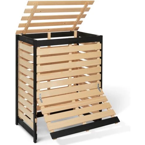 Réduisez vos déchets tout en créant un terreau naturel. Engagez toute votre famille dans cette démarche simple et gratifiante du recyclage de vos déchets. Ce composteur de 90 CM x 80 CM x 50 CM offre une grande capacité de stockage : 360 litres.Le bac dispose de deux trappes. L’une sur le dessus pour déposer vos déchets et vérifier l’avancement du compost. L’autre près du sol est doté d’un loquet en bois pour récupérer votre terreau, vous apprécierez son ergonomie. Installez votre compost à même le sol afin de lui faire profiter de toute la vie organique de votre jardin. Vous pouvez y mettre toutes sortes de déchets de vos épluchures de légumes à votre gazon. Afin d’obtenir un compost de qualité, n’oubliez pas de varier vos déchets. Votre compost a besoin de différentes couches de matières : des déchets humides (herbes, fleurs coupées), des déchets secs (épluchures, marc de café) et d’eau. La disposition des lattes du composteur permet à l’humidité de s’y infiltrer sans jamais noyer votre compost. Cela permettra aux micro-organismes naturels tels que les vers de terre de développer la décomposition de vos déchets et ainsi de créer votre compost. Dimensions du bac de compostage en bois 360L- Dimensions hors tout : Longueur 80 CM x largeur 50 CM x Hauteur 90 CM – Trappe : 76 x 42 CM – Poids : 12,5 Kg- Capacité : 360 L Maxi- Bois naturel traité par fumigation