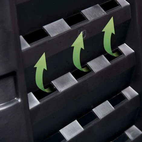 Ce bac à compost de jardin résistant aux intempéries aide à accélérer la décomposition de la matière organique et à préparer vous-même l’engrais. Le convertisseur de déchets convient aux déchets de jardin et de cuisine. Le développement de chaleur élevée à l’intérieur de l’unité de compostage favorise une décomposition bactérienne plus rapide et produit un meilleur humus. Doté d’un design compact, le composteur de jardin prend peu de place, mais offre un grand volume. Les couvercles sur le dessus facilitent le remplissage par le haut. Et le rabat assure un retrait simple de l’humus. Le système d’irrigation goutte à goutte, trou de cadenas, verrous latéraux solides, charnières de trappe solides, poignée confortable et de grandes portes coulissants avec des supports confortables assurent tous son utilisation conviviale.